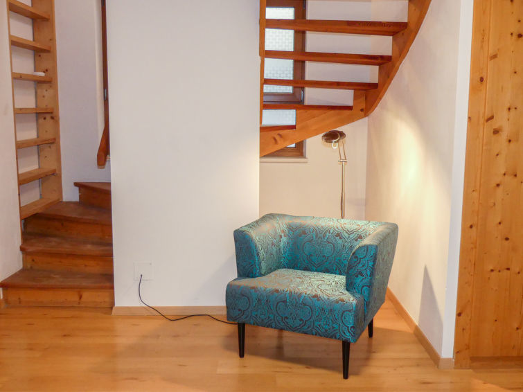 Maison 3 pièces 90 m2 sur 2 niveaux. Spacieux et clair, aménagement plaisant: entrée. Séjour/chambre à coucher avec 1 divan-lit double, TV (câblée) et écran plat. Cuisine (four, lave-vaisselle, 4 plaques vitrocéramiques, grille-pain, bouilloire électrique, micro-ondes, congélateur, cafetière électrique) avec coin repas. Salle de bains, douche, WC séparé. À l'étage supérieur: 1 chambre double avec TV (satellite). 1 chambre avec 1 lit et 1 lit double. WC séparé. Sol en bois. Balcon 4 m2, grande terrasse 25 m2. Meubles de terrasse. Belle vue sur les alentours. A disposition: coffre-fort, lit bébé jusqu'à 2 ans, sèche-cheveux. Internet (Connexion WIFI, gratuit). Veuillez noter: logement non-fumeur. Maximum 1 animal/ chien autorisé. Détecteur de fumée, extincteur. 50619-006039-2021