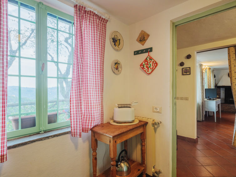 Maison 4 pièces 100 m2 sur 2 niveaux. Aménagement simple et plaisant: séjour/salle à manger. Sortie sur la terrasse. Petite coin cuisine (3 plaques de cuisson, grille-pain, micro-ondes, cafetière électrique). À l'étage supérieur: (escalier raide) 1 chambre double avec 1 lit double. 1 chambre double avec 2 lits. 1 chambre avec 1 lit. Douche/bidet/WC. Pas de chauffage. Terrasse 50 m2. Meubles de terrasse. Vue panoramique sur la mer, les montagnes et les alentours. A disposition: lave-linge, fer à repasser, moustiquaire, sèche-cheveux. Internet (Connexion WIFI, gratuit). Place de parking (1 Voiture). Veuillez noter: maison non-fumeur. Maximum 1 animal/ chien autorisé. Détecteur de fumée, extincteur. IT046005C2DSTRAUIX