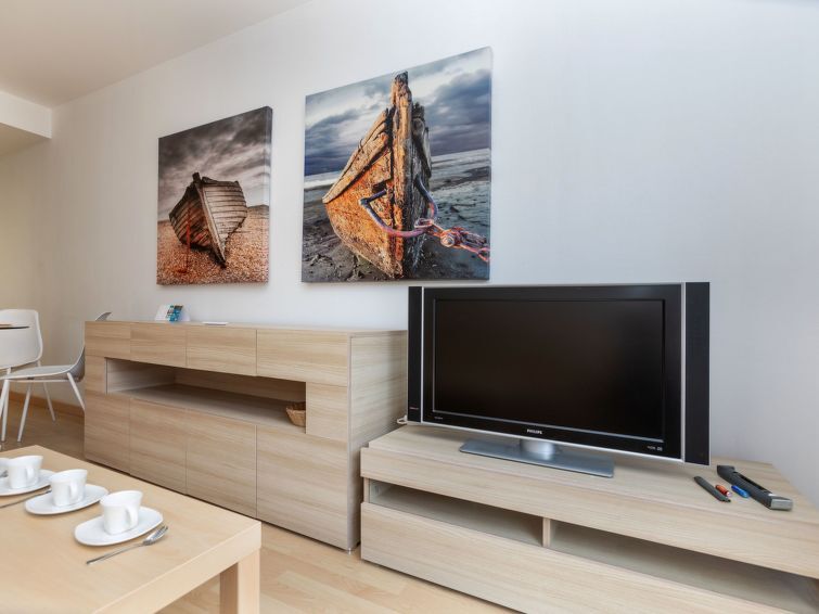 Appartement 2-kamers 48 m2 op de 1e verdieping. Licht, modern en gezellig ingericht: woon-/eetkamer met 1 2-pers divanbed (1 x 135 cm, lengte 180 cm), Digitale TV, Flatscreen TV, air-conditioning, heteluchtverwarming en elektrische rolluiken. 1 kamer met 1 2-pers bed (1 x 150 cm), air-conditioning, heteluchtverwarming en elektrische rolluiken. Open keuken (oven, afwasmachine, 3 keramische glas kookplaten, magnetron, diepvriezer, elektrische koffiemachine, pads voor de koffiemachine (Tassimo (Bosch)). Bad/bidet/WC. Uitzicht op het zwembad. Ter beschikking: wasmachine. Parkeerplaats nr. 12 (overdekt). TV alleen ES. HUTG021175 // Reg. Nr.: ESFCTU000017008001283088000000000000000000HUTG0211752