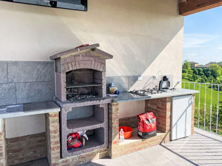 "Zio", halfvrijstaand huis 3-kamers 90 m2. Rustiek en gezellig ingericht: woon-/slaapkamer met 1 2-pers divanbed, zwedenkachel, TV en air-conditioning. Keuken (oven, Gasfornuis, 4 kookpitten (vlammen), diepvriezer, elektrische koffiemachine). Douche/WC. Bovenverdieping: 1 kamer met 1 bed, 1 2-pers bed en air-conditioning. Uitgang naar het balkon. 1 kamer met 1 bed, 1 2-pers bed en air-conditioning. Uitgang naar het balkon. Natuurstenen vloeren. Groot terras 20 m2. Terrasmeubelen, barbecue. Mooi uitzicht op de bergen en het landschap. Ter beschikking: wasmachine, strijkijzer, kinderbed tot 2 jaar. Internet (WiFi, gratis). Maximaal 1 huisdier/hond toegestaan. Privé ingang. IT005087C2AZKI95PV