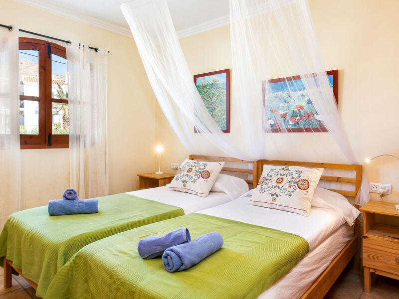"Los Olivos de Capistrano", huis in een rij 3-kamers 121 m2. Ruim en licht, doelmatig en comfortabel ingericht: woon-/eetkamer met Digitale TV, air-conditioning en heteluchtverwarming. Uitgang naar de tuin, naar de zitplaats in de tuin. Open keuken (5-pits kookplaat, oven, afwasmachine, broodrooster, waterkoker, magnetron, diepvriezer, elektrische koffiemachine, combimagnetron). Uitgang naar het terras. Aparte WC. Bovenverdieping: 1 kamer met 2 bedden (90 cm, lengte 200 cm), bad/douche/WC, air-conditioning en heteluchtverwarming. 1 kamer met 1 2-pers bed (160 cm, lengte 200 cm), bad/douche/WC, air-conditioning en heteluchtverwarming. Uitgang naar het terras. Ruime zithoek in de tuin. Terrasmeubelen. Zeer mooi uitzicht op zee, de bergen en het zwembad. Ter beschikking: wasmachine, kluis, strijkijzer, kinderstoel, kinderbed, haardroger. Internet (WiFi, gratis). VUT/MA/71348 // Reg. Nr.: ESFCTU0000290130000793530000000000000000VUT/MA/713484