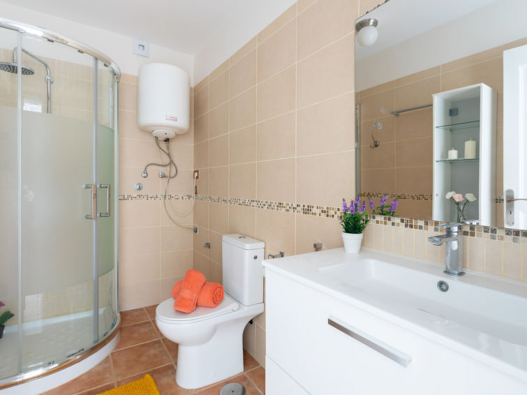 Appartement 2-kamers 53 m2, op de begane grond. Comfortabel ingericht: woon-/eetkamer met 1 divanbed (150 cm, lengte 190 cm), TV. Uitgang naar het terras. 1 kamer met 1 2-pers bed (180 cm, lengte 190 cm), Digitale TV. Open keuken (oven, afwasmachine, 3 inductiekookplaten, broodrooster, magnetron, diepvriezer, elektrische koffiemachine). Douche/WC. Geen verwarmingsmogelijkheid. 2 terrassen. Terrasmeubelen. Beperkt uitzicht op zee. Ter beschikking: wasmachine, strijkijzer, kinderstoel, kinderbed, haardroger. Internet (Internet (WiFi)). Geschikt voor families. Rookvrij huis. A-38-4-0007310